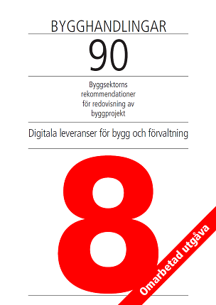 Bygghandlingar 90 Del 8, Digitala leveranser för bygg och förvaltning ersätter tidigare utgåva med titeln Redovisning med CAD. Det förändrade innehållet innebär dels en utvidgning mot övriga delar av bygg- och förvaltningsprocessen, dels att fokus förskjutits från redovisningens visuella uttryck till det underliggande informationsinnehållet. Avsikten är att komplettera den beskrivning av redovisningsformer och redovisningssätt som behandlas i delarna 1-7 med den underliggande hanteringen av data, för att underlätta ett obrutet informationsflöde mellan olika skeden och mellan olika aktörer, från projektör till slutanvändare. Denna del har alltså tillämpning för informationsutväxling inom alla skeden av processen. Därmed är också målgruppen för denna del betydligt utvidgad, till alla aktörer som står som producenter respektive beställare av information.